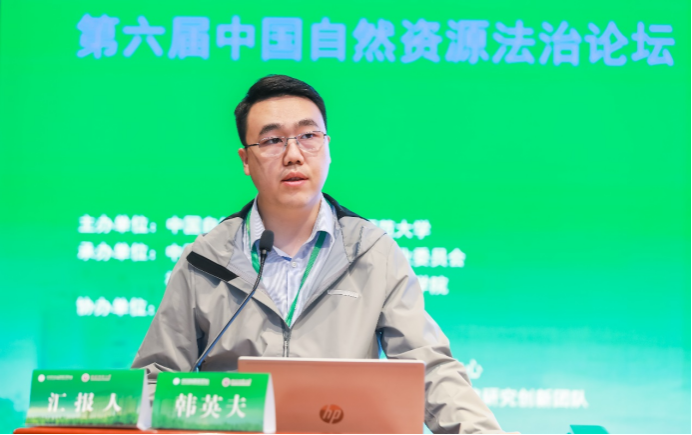 图3.韩英夫副教授作《全民所有自然资源资产损害赔偿制度的规范革新与体系效益》主题发言