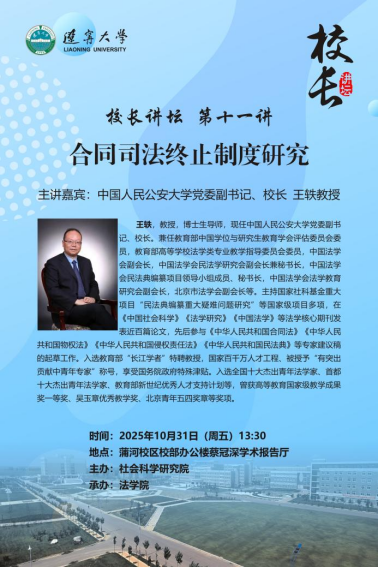 讲座预告|辽宁大学校长讲坛第十一讲 王轶:合同司法终止制度研究