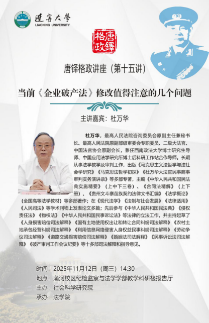 讲座地点:蒲河校区纪检监察与法学学部教学科研楼报告厅