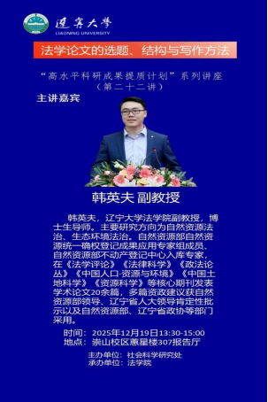 讲座地点:辽宁大学崇山校区蕙星楼307室