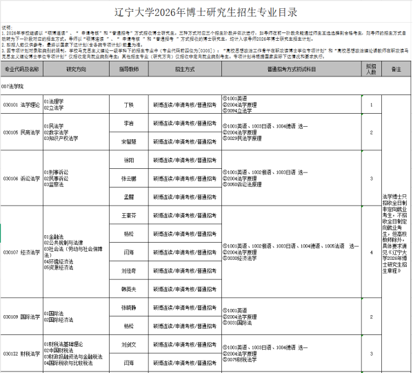具体招生专业及导师详见《辽宁大学2026年博士研究生招生专业目录》。